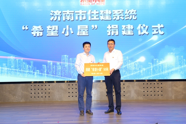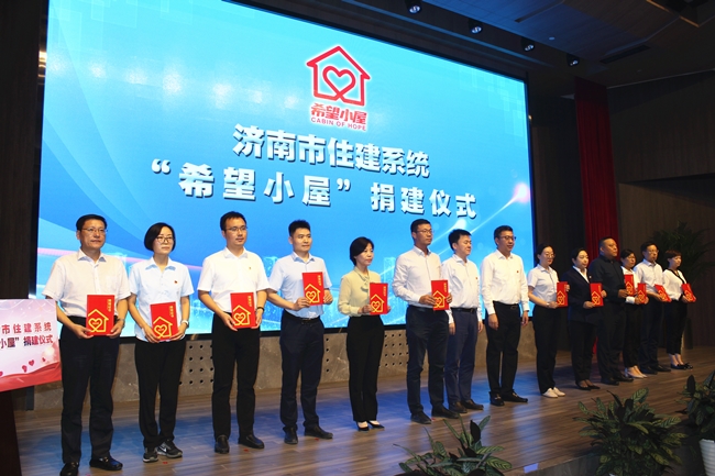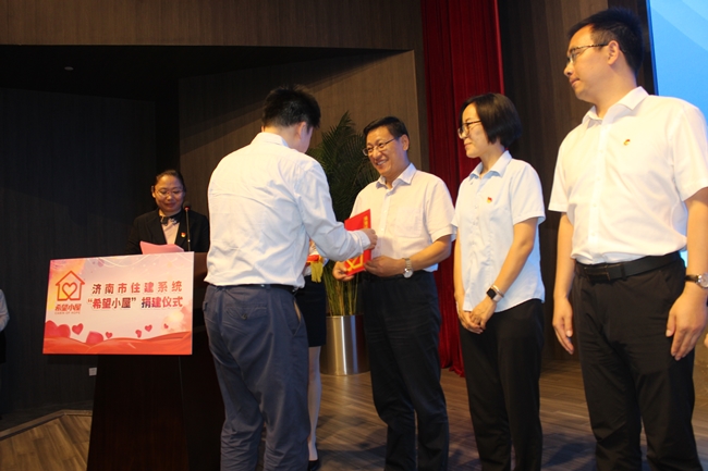 ??? 9月11日下午,濟南市住建系統“希望小屋”捐建儀式在市政設計大廈舉行。團市委書(shū)記黃曉廣,市住建局黨組書(shū)記、局長(cháng)陳勇出席活動(dòng),儀式由團市委副書(shū)記徐冬梅主持。集團紀委書(shū)記王維鋒參加活動(dòng)并代表愛(ài)心企業(yè)發(fā)言。