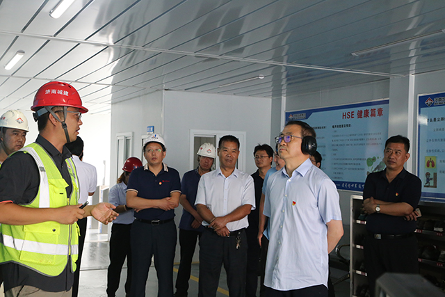 ??? 6月30日,濟南市城鄉交通運輸局局長(cháng)賈玉良一行察看集團承建的春暄路道路建設工程。集團總經(jīng)理牟曉巖等陪同。