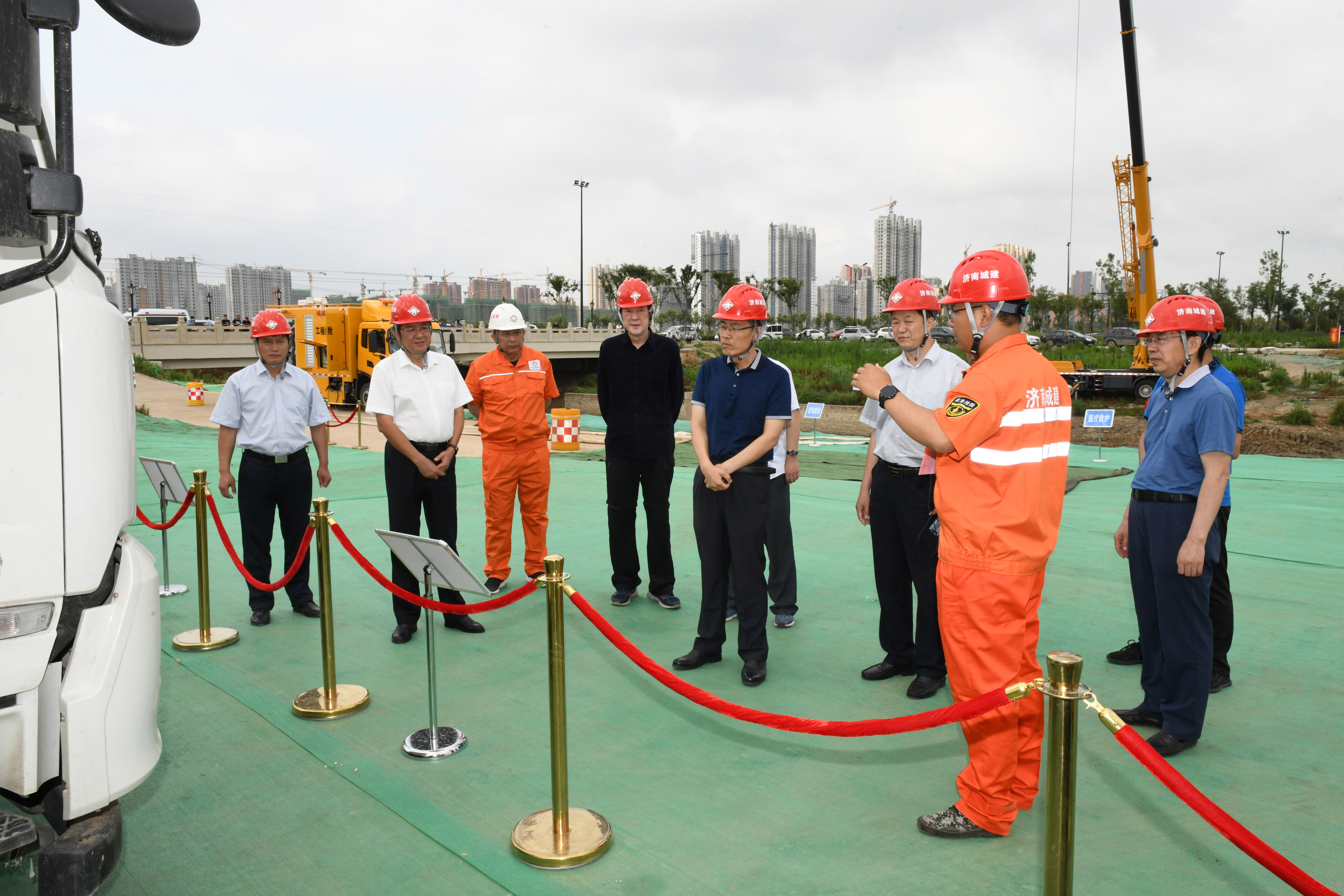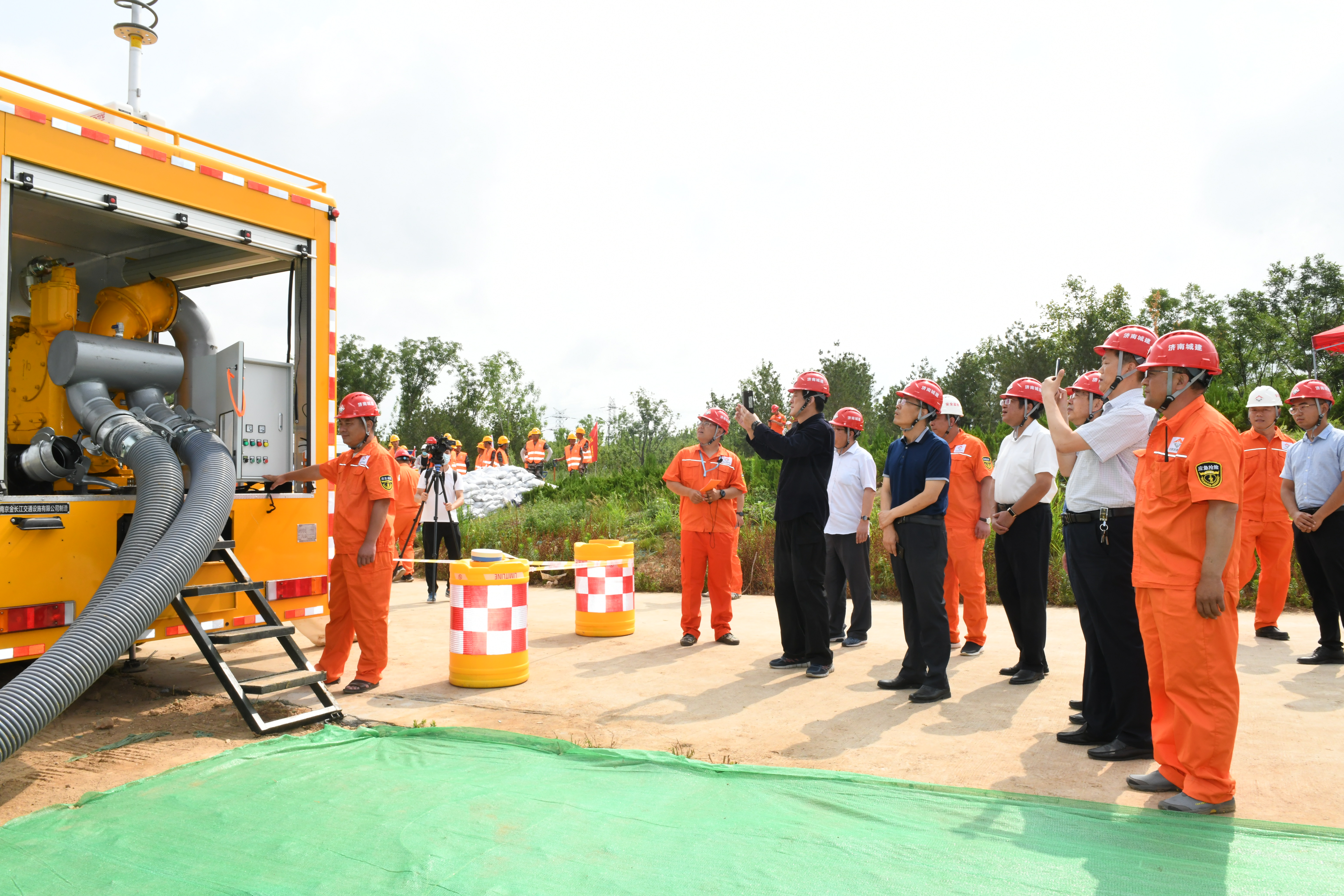 ??? 為進(jìn)一步檢驗集團防汛應急預案的科學(xué)性、有效性和可操作性,提高應急反應和防汛搶險能力,6月24日上午,在集團龍脊河項目施工現場(chǎng)舉行“濟南城建集團2020年防汛應急演練”。山東省應急管理廳防汛抗旱處處長(cháng)王秀中,濟南市應急管理局副局長(cháng)魏強、黨組成員李學(xué)軍、防汛抗旱處處長(cháng)周凱、科長(cháng)楊志斌,集團總經(jīng)理牟曉巖,副總經(jīng)理呂守明、馬烽及分(子)公司經(jīng)理、安全分管經(jīng)理等150余人參加了演練活動(dòng)。