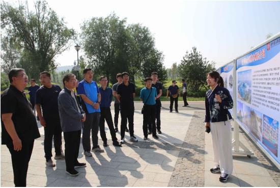 王玉志廳長(cháng)(前排左四)聽(tīng)取公園建設情況匯報
