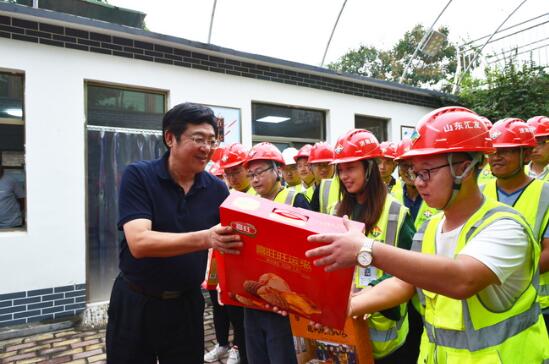 金秋送爽,丹桂飄香。9月29日下午,集團總經(jīng)理牟曉巖,工會(huì )主席朱相波,副總經(jīng)理王翔,到平陰縣項目部慰問(wèn)奮戰在施工一線(xiàn)的干部職工。
