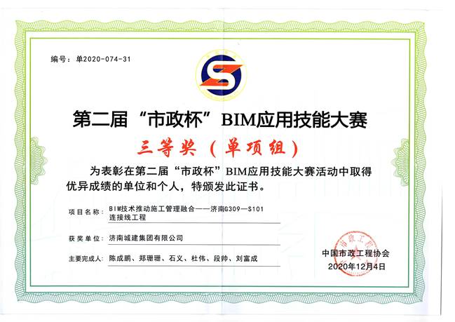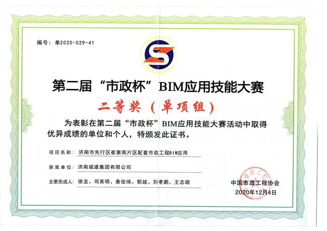 近日,中國市政工程協(xié)會(huì )舉辦“全國市政基礎設施BIM技術(shù)交流發(fā)展大會(huì )”,會(huì )上對第二屆“市政杯”BIM應用技能大賽進(jìn)行頒獎。集團參賽項目經(jīng)過(guò)專(zhuān)家評審,最終獲得2項二等獎,1項三等獎。