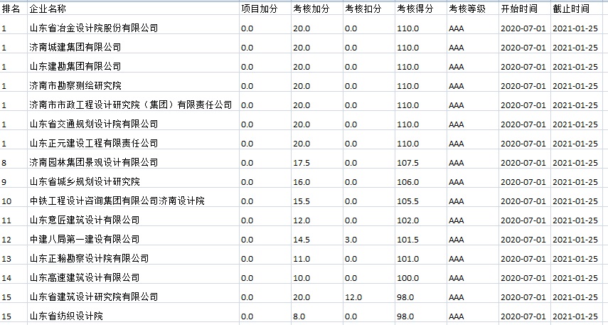 近日,濟南市住房和城鄉建設局發(fā)布了“關(guān)于2020年下半年度全市勘察設計行業(yè)信用評價(jià)結果的公示”結果,集團在全市404家參評單位中脫穎而出,取得勘察設計行業(yè)信用評價(jià)考核滿(mǎn)分(110分)3A最高等級,并列第一名。