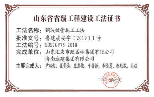 集團“鋼波紋管施工工法”被評為山東省省級工程建設工法