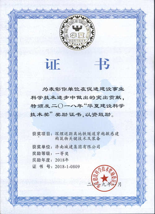 集團《深埋近距離地鐵隧道穿越敏感建構物關(guān)鍵技術(shù)及裝備》榮獲華夏建設科學(xué)技術(shù)獎一等獎