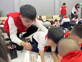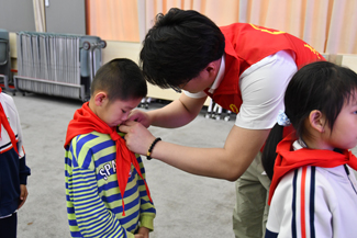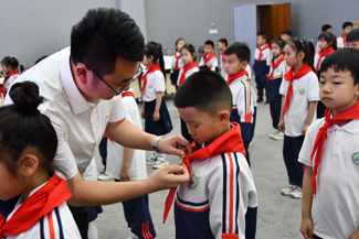 隨后,我們的志愿者與小朋友們進(jìn)行親密互動(dòng),為孩子們佩戴少先隊隊徽,以通俗易懂的方式為大家講解少先隊知識、安全知識。志愿者們與小朋友們有說(shuō)有笑,其樂(lè )融融,同時(shí)為小朋友們送去集團的關(guān)愛(ài)和祝福,孩子們用整齊的少先隊禮回應志愿者,稚嫩的童顏上洋溢著(zhù)燦爛的笑容。