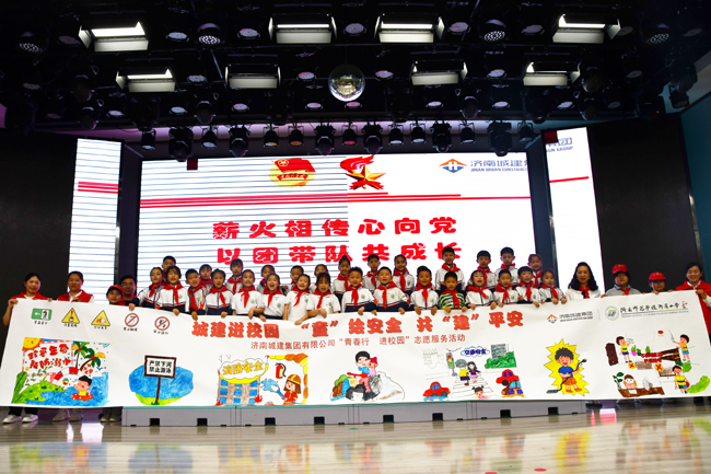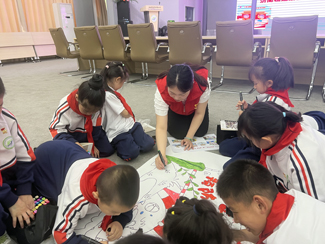 集團團委書(shū)記楊碩、四個(gè)團支部的青年團干部以青年志愿者的身份走進(jìn)集團“紅色合伙人”共建單位—濟南師范附屬小學(xué),與今年第一批入隊的90名少先隊員一起繪制兩幅十米長(cháng)畫(huà)卷,畫(huà)卷包含“童心向黨 爭做好隊員”“‘童’繪安全 共 ‘建’平安 ”兩大主題,大家在活動(dòng)中共同感受深刻的愛(ài)黨、愛(ài)國以及安全方面的主題教育。