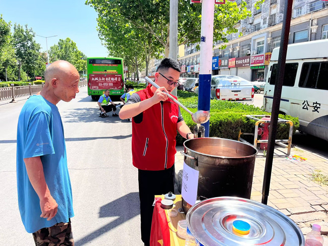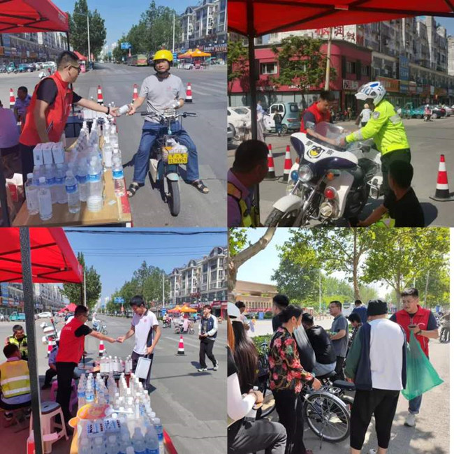 高考進(jìn)行時(shí),志愿者們分別到各交通執勤路口,為考生們保駕護航的現場(chǎng)交警、考生家長(cháng)及其他工作人員送去礦泉水及綠豆湯,感謝他們的辛苦付出和默默守護。