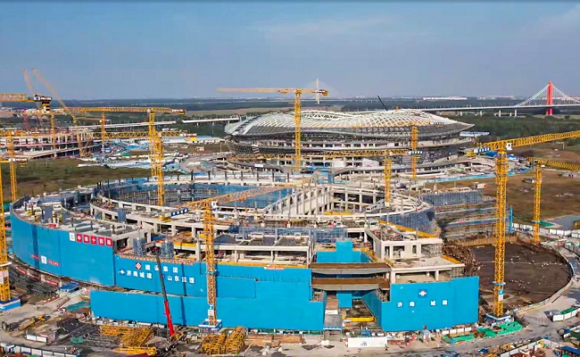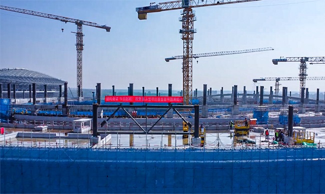 目前,項目總體進(jìn)展順利,主體結構均已按計劃節點(diǎn)完成,在今年6月實(shí)現了全面封頂。項目正進(jìn)行室內的二次結構砌筑,穿插機電專(zhuān)業(yè)的管線(xiàn)預埋工作。并推進(jìn)鋼結構屋蓋的吊裝,計劃元旦前完成全部外圍鋼結構屋蓋的吊裝工作。