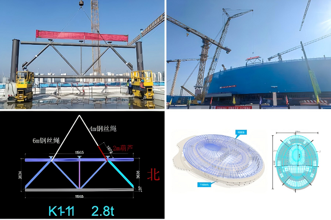 本次首吊的鋼桁架位于屋蓋起始安裝區域,單榀重量2.8噸。面對屋蓋結構面積大、體量大、跨度大,構件節點(diǎn)三維坐標精確定位難等挑戰,集團建設團隊創(chuàng )新采用“地面拼裝、整榀吊裝”方案,多臺大型起重機械協(xié)同作業(yè)。同時(shí),通過(guò)強化計算分析、嚴控拼裝精度、精準測量定位、嚴把焊接質(zhì)量,確保吊裝安全與施工質(zhì)量雙可控,助力實(shí)現首吊圓滿(mǎn)成功。